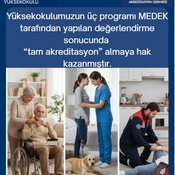Sağlık eğitiminde kaliteyi hedefleyen Sağlık Hizmetleri Meslek Yüksekokulu'nun İlk ve Acil Yardım, Engelli Bakımı ve Rehabilitasyonu ile Evde Hasta Bakımı programları, Mesleki Eğitim Değerlendirme ve Akreditasyon Derneği (MEDEK) tarafından yapılan kapsamlı değerlendirmeler sonucu başarılı bulundu.4 Yıllık Kalite Güvencesi